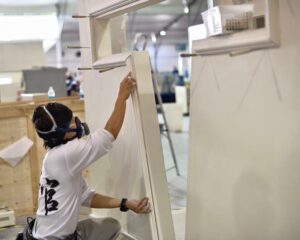 置き引きとは板の上に石膏を盛り付け、型を数回引いて形どる施工です。